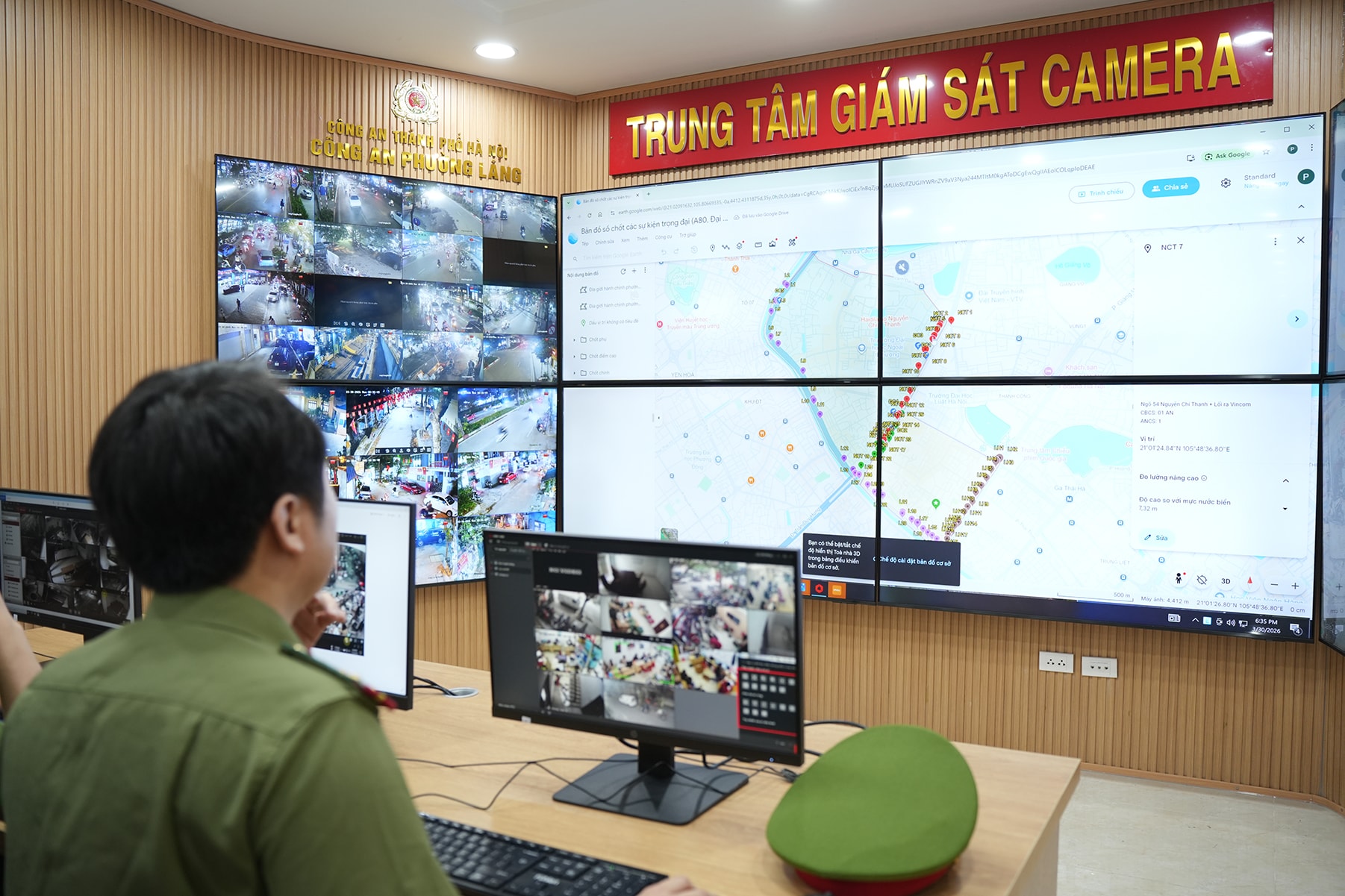 Với hệ thống trung tâm camera giám sát, lực lượng chức năng phường Láng đảm bảo khâu hậu kiểm thường xuyên, liên tục. Ảnh: Phạm Mạnh
